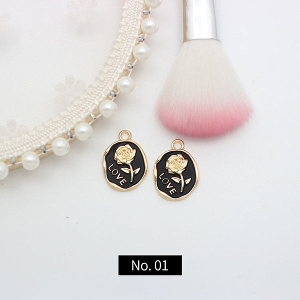 Colgante de esmalte de aleación con patrón de rosa, 1 pieza, MFPC4084
