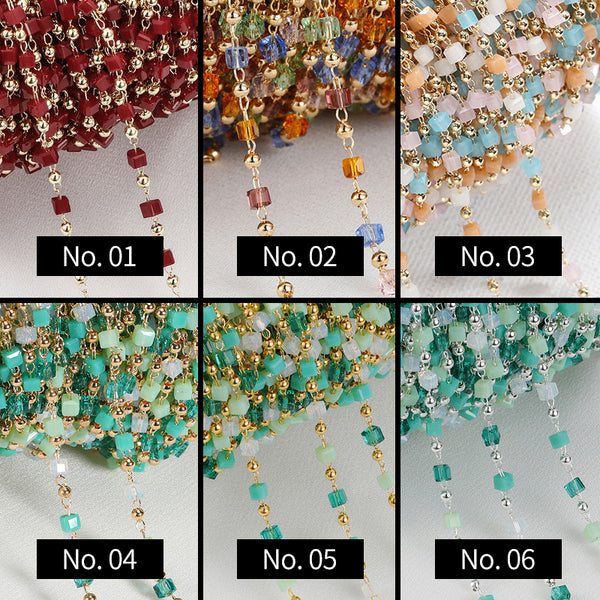 Numéro d'article : MSCH1047Matériau : Cristal de verre/cuivreTaille : 2.5*2.5mmLongueur : 1m