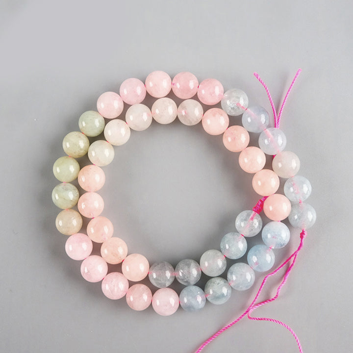Abbiamo selezionato con cura perle di colore più chiaro per creare questa combinazione di Morganite in gradiente. La materia prima per queste Morganite proviene da miniere naturali in Sudafrica.